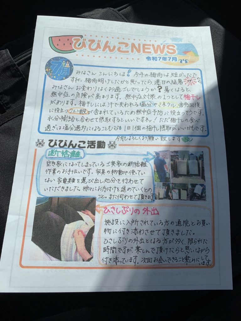 こんにちは!びびんこ大分です。先日も、大切なびびんこ会員様のお宅へ訪問させていただきました。皆さんがお変わりなく元気でいらっしゃる姿を見て安心いたしました。